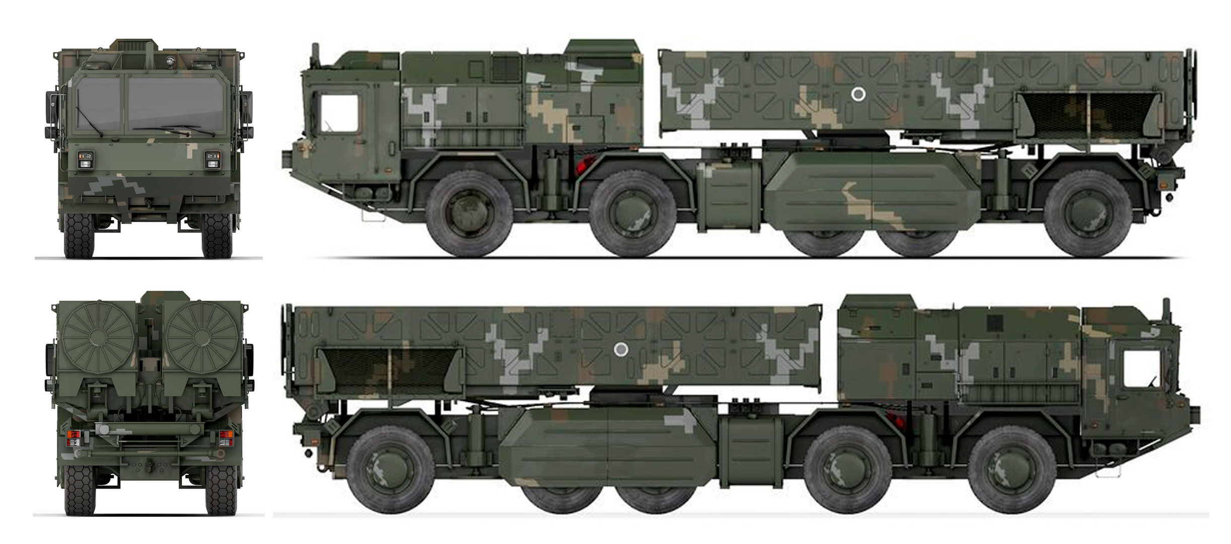 Батарея ОТР "Гром" на стартовой позиции (буклет UKRSPETSEXPORT, обработано).  Предположительный вид СПУ комплекса "Сапсан" (с) MilitaryRussia.Ru, 2011.