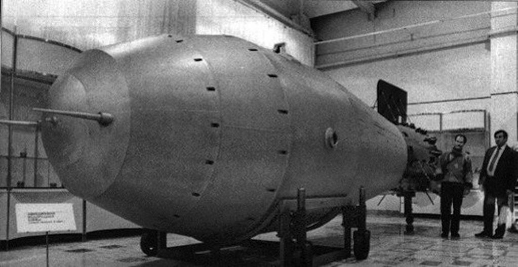 Академик Ю.Б.Харитон в музее РФЯЦ-ВНИИЭ у корпуса бомбы РДС-1. Музей ядерного оружия РФЯЦ-ВННИЭФ, 1993 г. (http://rusarchives.ru/school). | | | | | | | ДАННЫЕ НА 2025 г. (стандартное пополнение) АН602 / изделие 602 / "Царь-бомба"