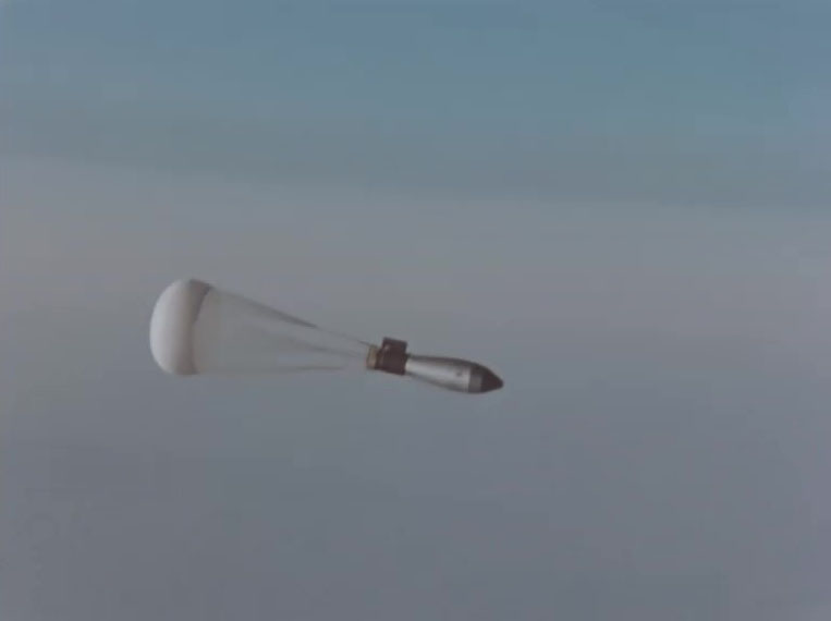 Парашютная система (площади парашютов): Масса парашютной системы - 1846 кг - вытяжной парашют - 0,5 кв.м - тормозные парашюты, раскрывавшиеся последовательно: один - 5 кв.м, три - по 5 кв.м , один - 40 кв.м, три - по 40 кв.м - основной парашют - 1600 кв.м